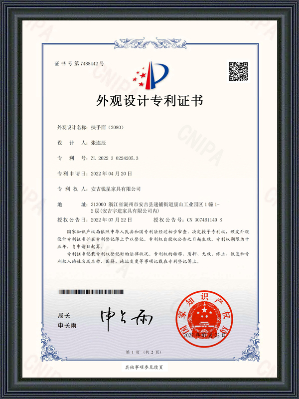 พื้นผิวที่เท้าแขน (2080) สิทธิบัตรรูปลักษณ์