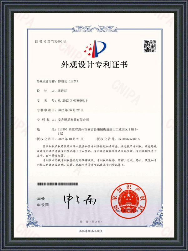 แขนยืดไสลด์ (สามส่วน) สิทธิบัตรการออกแบบรูปลักษณ์