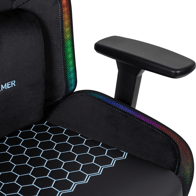 ที่พักแขนแบบปรับได้ 3D เป็นอีกหนึ่งข้อได้เปรียบที่สำคัญของ RX-2084 แถบไฟ LED 3D ที่เท้าแขนหนังพีวีซีเก้าอี้เล่นเกมสำนักงาน - สำหรับผู้เล่นอีสปอร์ตและพนักงานออฟฟิศ ความสูงและมุมของที่วางแขนที่เหมาะสมจะช่วยลดแรงกดบนแขนและไหล่ได้อย่างมีประสิทธิภาพ ที่พักแขนแบบ 3 มิติของเก้าอี้สามารถปรับได้ทุกทิศทาง ไม่ว่าจะเป็นการยืดไปข้างหน้า การดึงกลับ การยกหรือการกดลง ซึ่งสามารถทำได้ง่าย ๆ เพื่อตอบสนองความต้องการส่วนบุคคลของผู้ใช้ที่แตกต่างกัน ด้วยพนักพิงและเบาะรองนั่งที่ออกแบบตามหลักสรีระศาสตร์ สามารถรองรับกระดูกสันหลังได้ดี และลดความเสียหายต่อร่างกายที่เกิดจากการนั่งเป็นเวลานาน